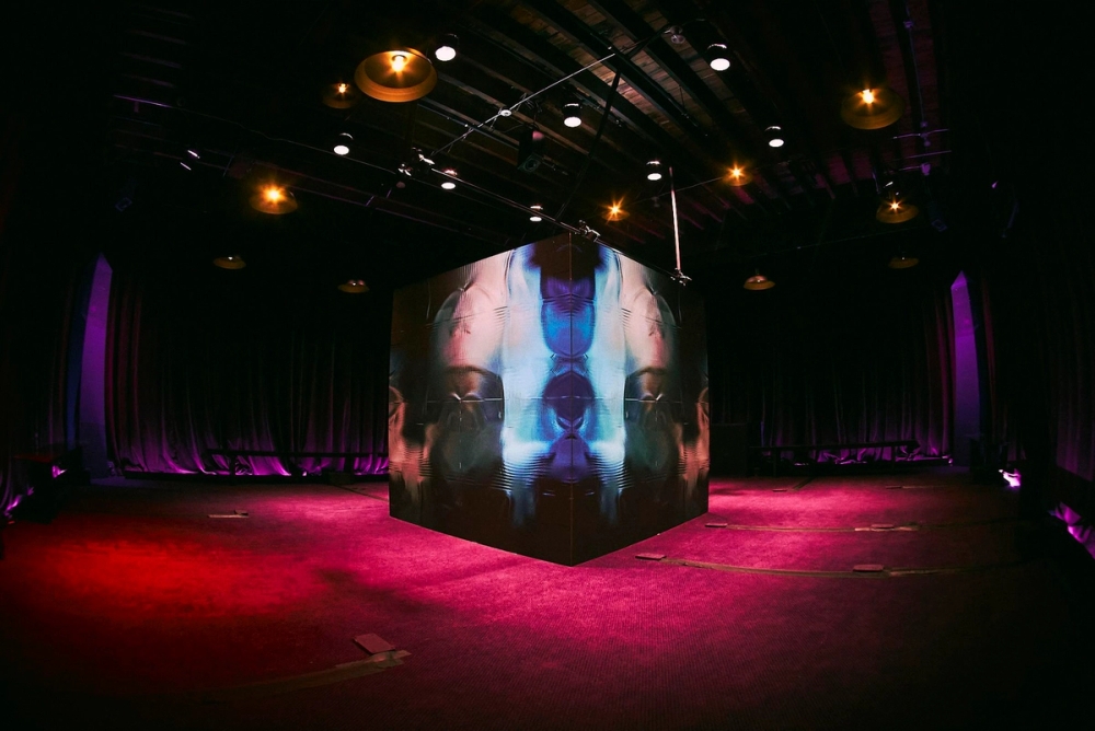 The installation consists of a 7-foot LED display cube surrounded by Ambisonic 3D spatial sound. The experience takes viewers through an audio-visual symphony of hypnotic and meditative sequences that echo patterns in psychedelic and non-ordinary states of consciousness.