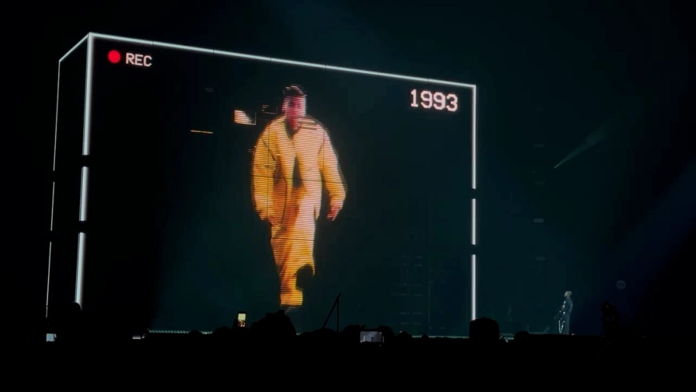 The AI-driven visuals brought Usher's past and future selves to life, including moments of Usher zooming into a conversation with his childhood self, connecting his legacy with every visual twist and turn.